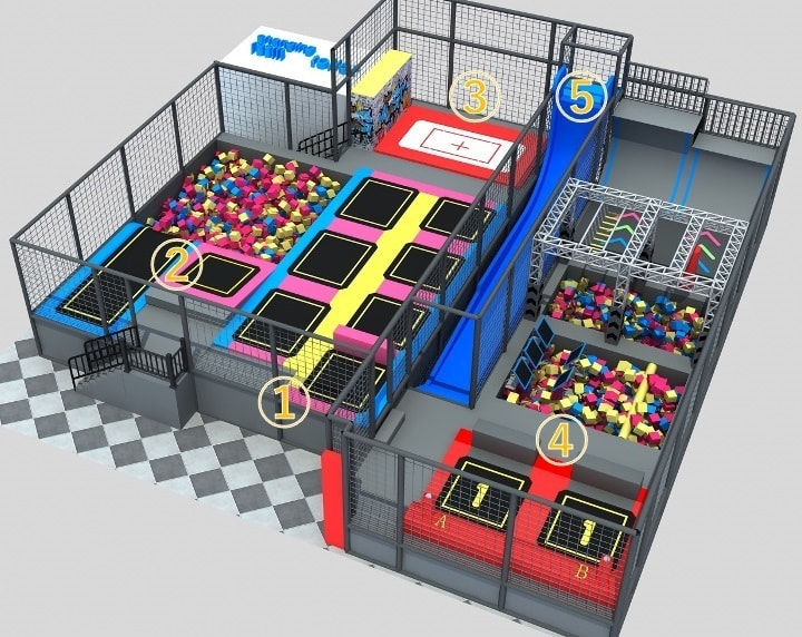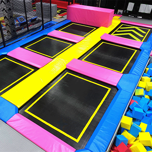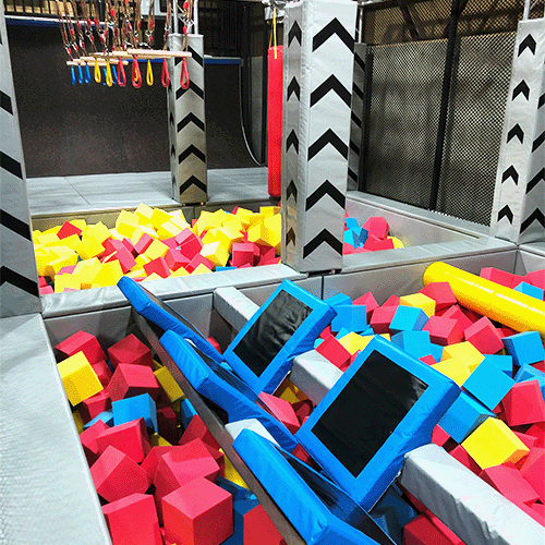 幼児から大人までがジャンプして楽しめる様々な大きさのトランポリンが7面設置されています。障害物を越えるパルクール体験や、初めてトランポリンを跳ぶ方へおすすめです。