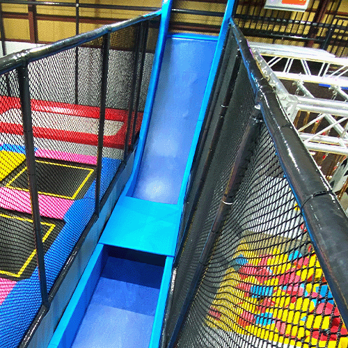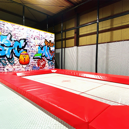 競技用に近いトランポリンを使って高くジャンプができるため、様々なアクティビティを楽しむことができます。例えば、2.5mの壁に飛び乗ったり、宙返りやバク転などの技もできます。