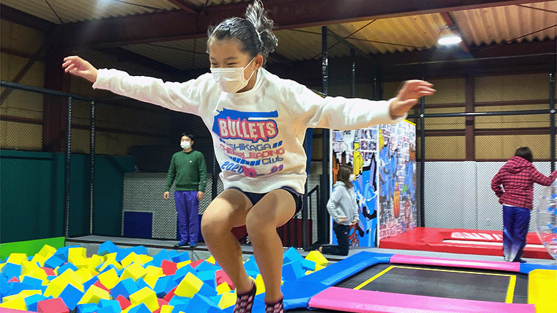 ジャンポリンではトランポリンを中心にさまざまなアトラクションがございます。トランポリンの最大の特徴は楽しみながら運動効果が非常に高いというところです。
